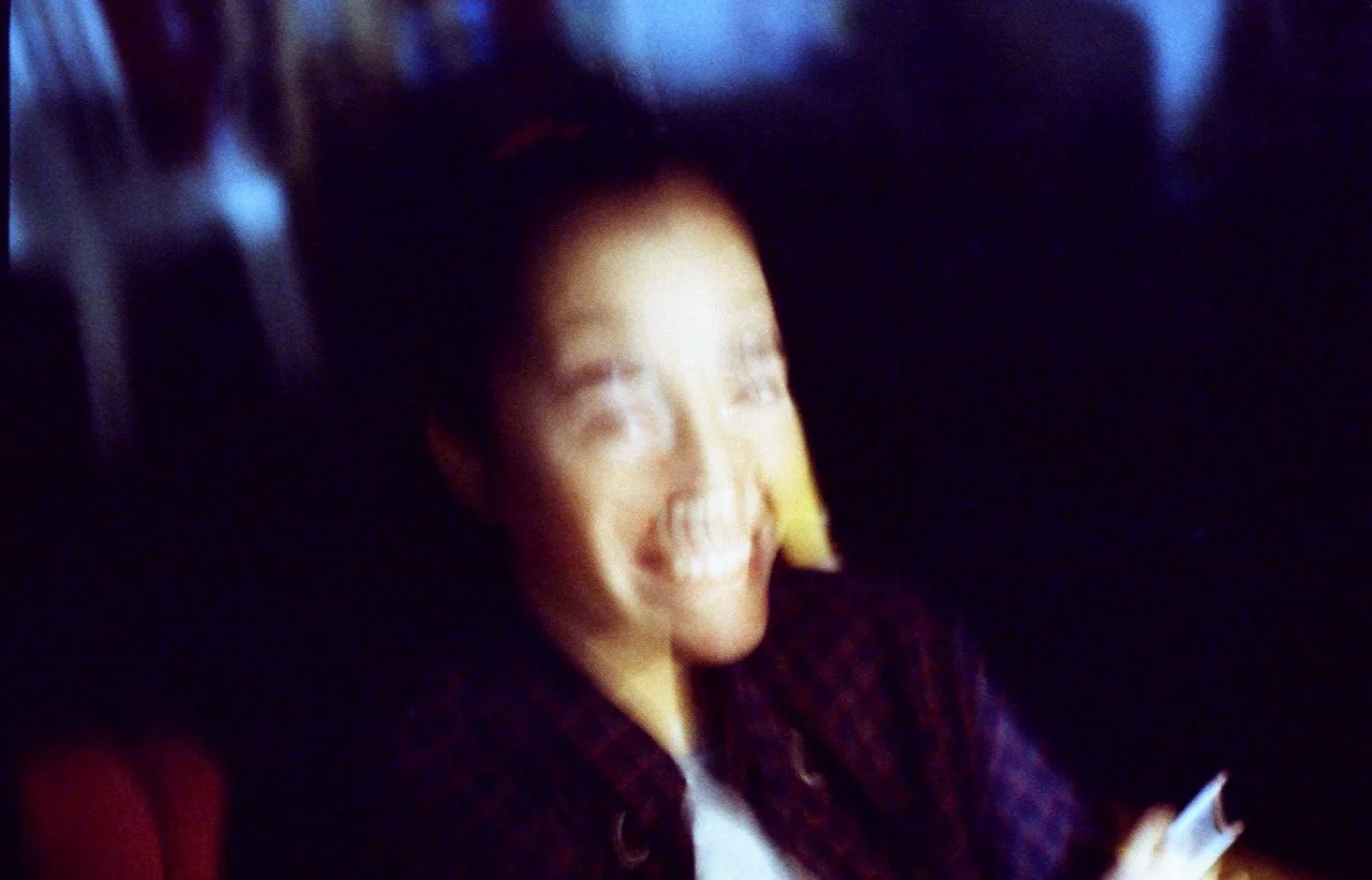 A blurred close-up side profile of a person's face in low light with a soft focus, highlighting their nose and mouth.